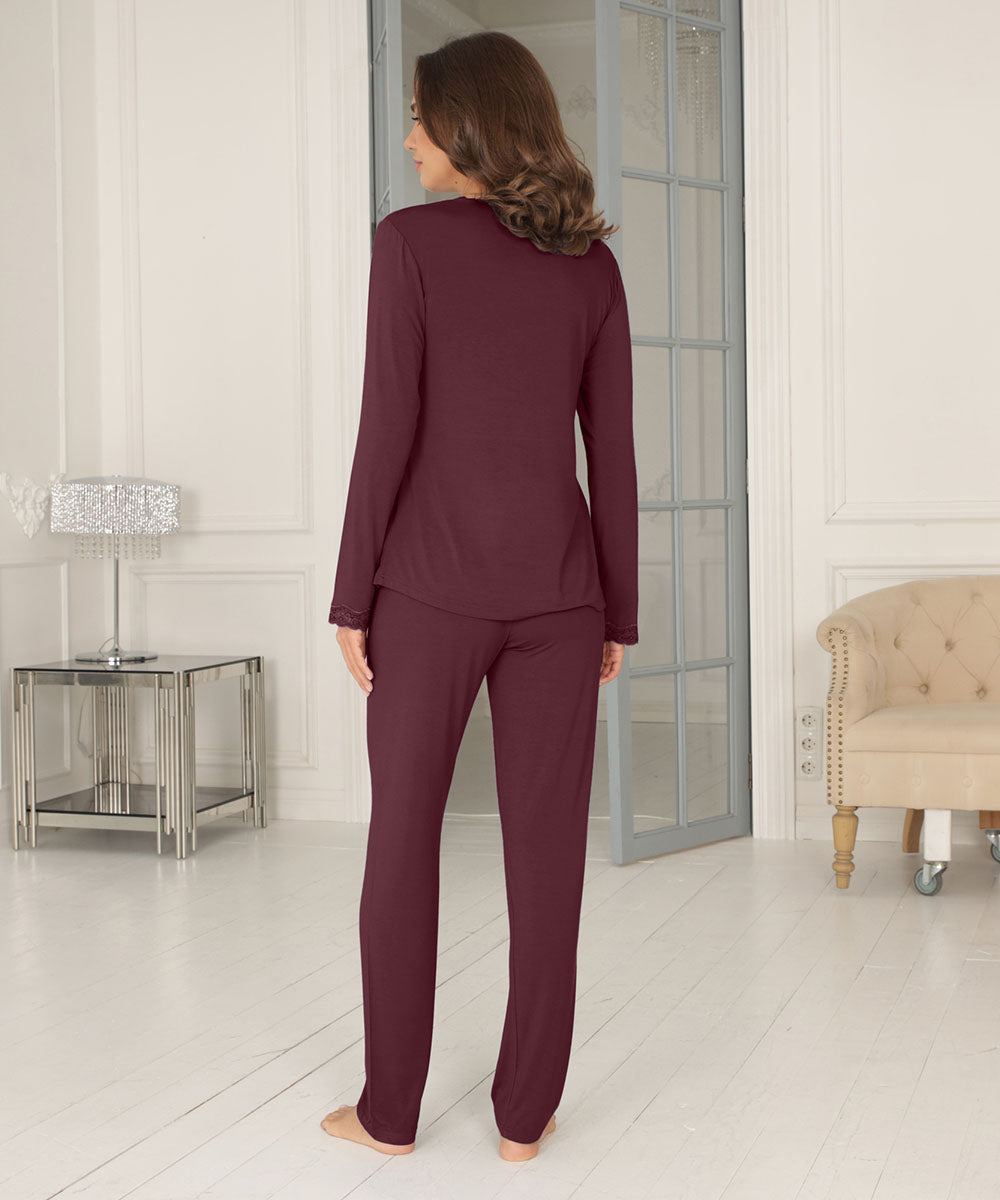 Bamboo - long sleeve pyjamas with lace - 221 PLUM