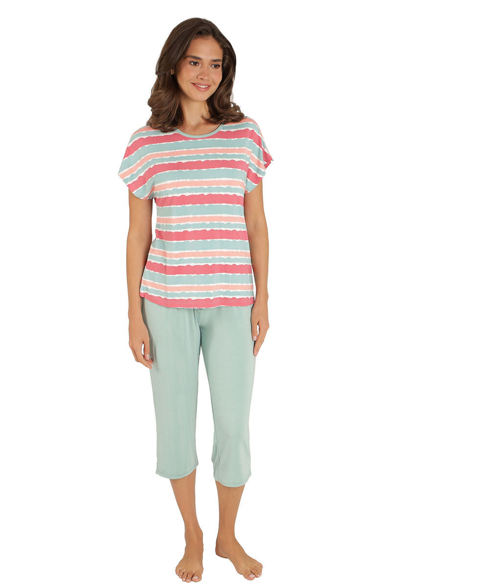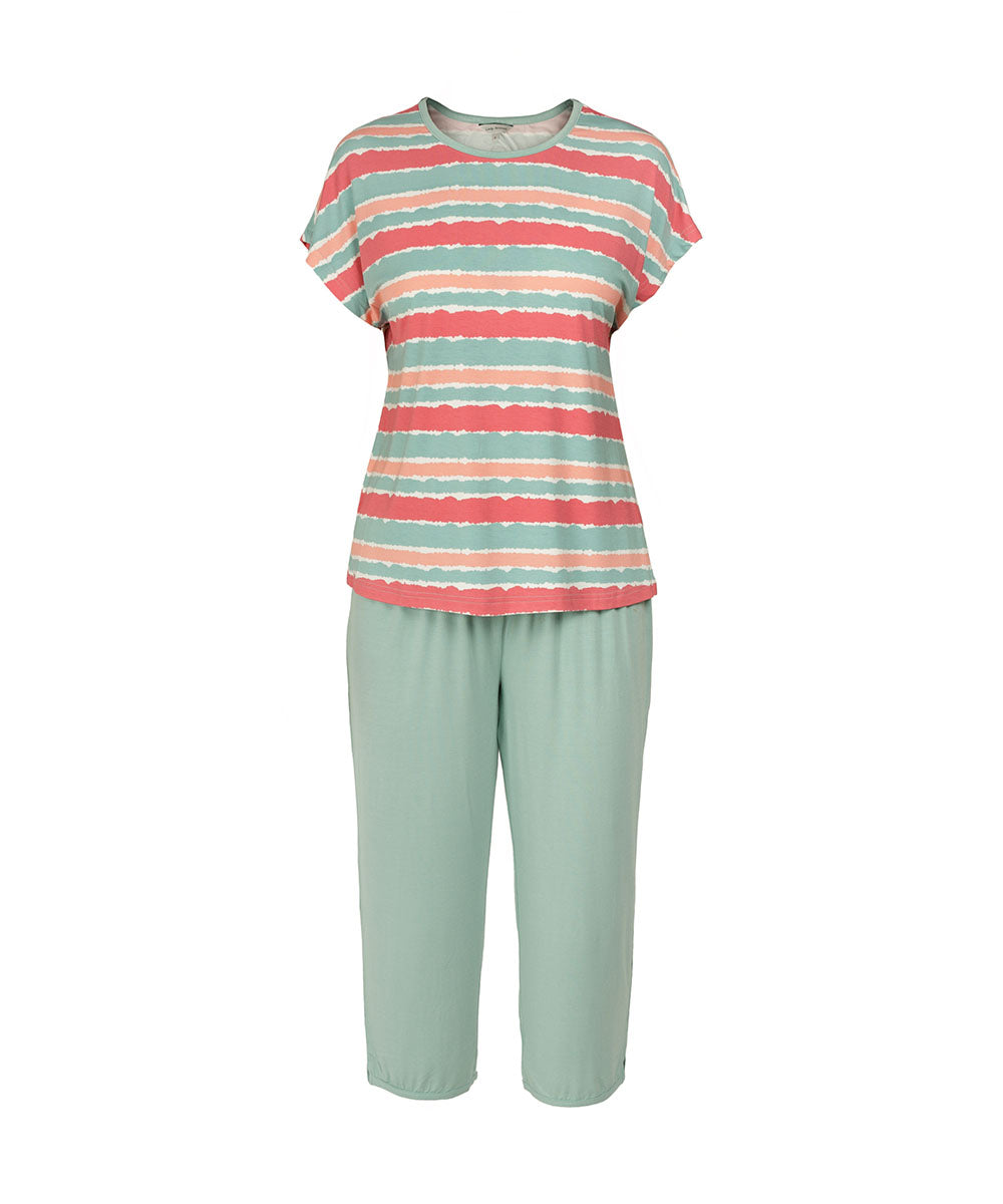 Bamboo Homewear - Sleeve PJ With Pirate Pants - 686 GREEN-CORAL AQUAREL