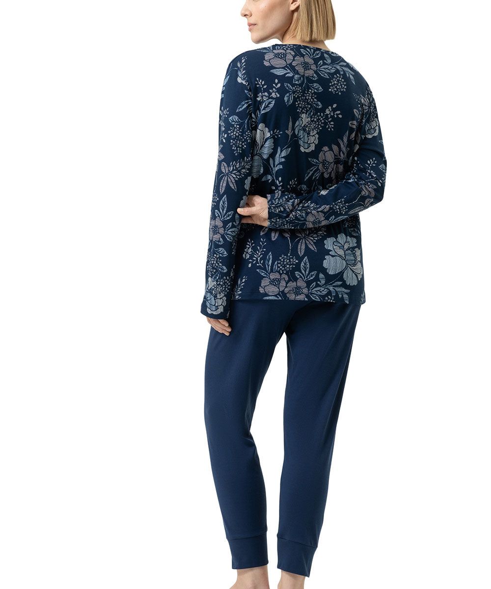 Elegant nattøjssæt fra Mey med lange ærmer og ben. Natblusen er designet i et fint blomstret print. Pyjamassættet er lavet i bomuld.