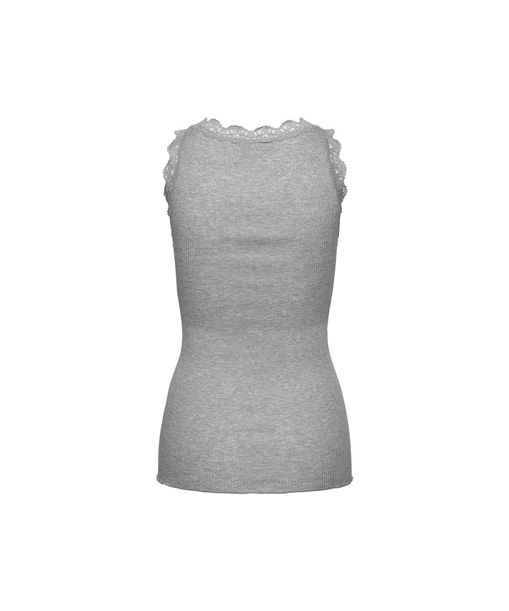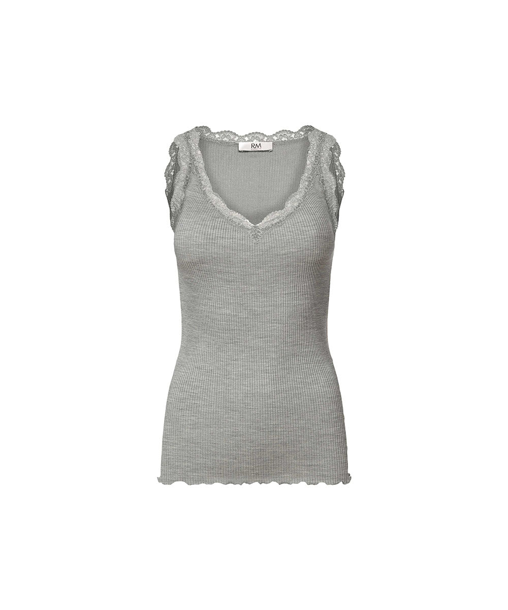 Elegant undertrøje fra Rosemunde. Undertrøjen er dekoreret med smukke blonder langs halsudskæringen. Toppen er rundstrikket i en blød ribbet, der indeholder både bomuld og modal. Tøj lavet i modal er fordelagtig at have, hvis du ønsker åndbart og hurtigtørrende tøj. Dertil kan modal have en kølende effekt, og samtidig er det meget vandabsorberende – hvilket kan være til gavn for dig, hvis du har tildens til at svede.