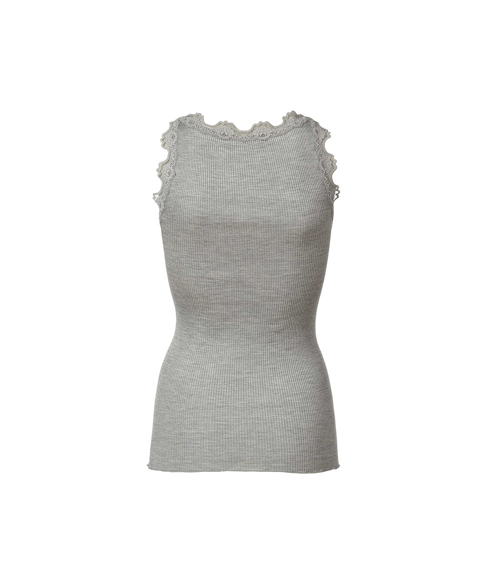 Silk - Top Regular W/Vintage Lace - 008 LIGHT GREY MELANGE