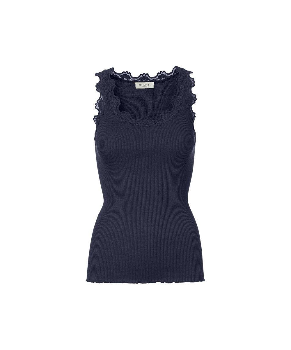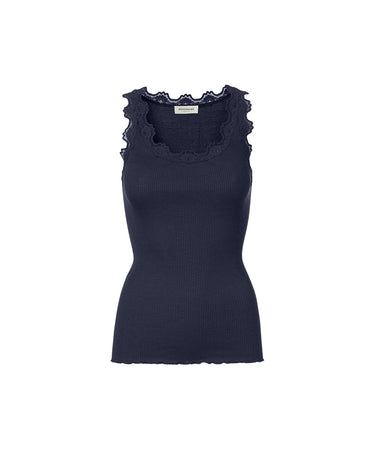 Silk - Top Regular W/Vintage Lace - 135 NAVY