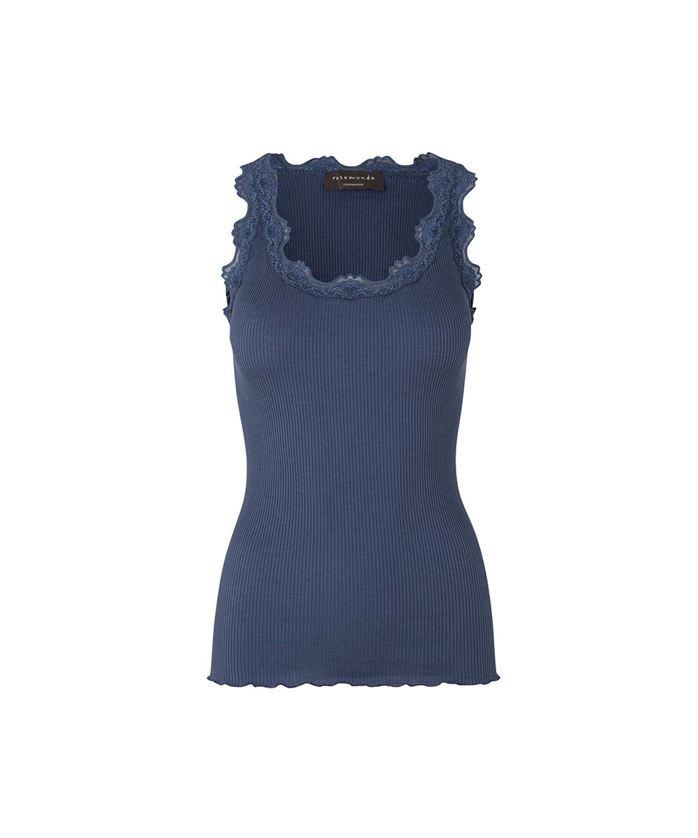 Silk - Top Regular W/Vintage Lace - 152 DENIM BLUE