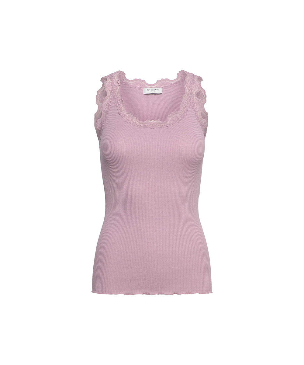 Elegant undertrøje fra Rosemunde. Undertrøjen er dekoreret med smukke blonder langs halsudskæringen. Toppen er rundstrikket i en blød ribbet, der indeholder både bomuld og silke. Silke er temperatur-regulerende, hvilket betyder at silke varmer på kolde dage og køler på varme dage. Så du kan med fordel købe nattøj eller homewear i naturlig silke, da du kan iføre dig det året rundt.