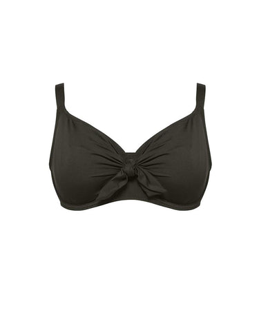 Fin bikinitop med en dekorativ knude fra Saltabad. Bikinioverdelen er uden vattering og med bøjle. Badetøj skal gerne sidde stramt, da det udvider sig ved brug. Husk altid at skylle badetøjet op i koldt vand efter brug.