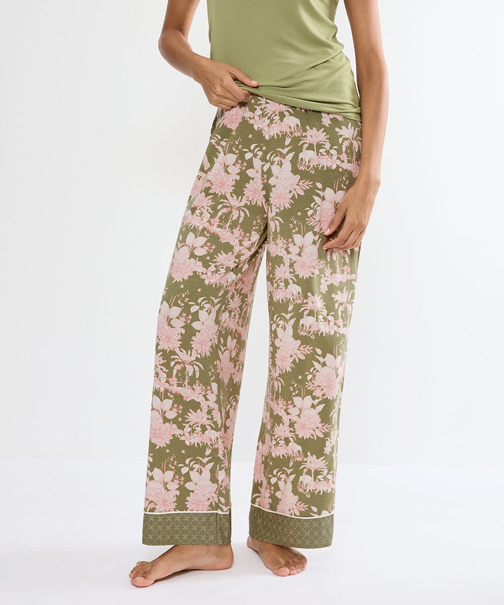 Elegante bukser med brede ben fra Triumph. Materialet føles let og behageligt mod huden og har et flot fald. Den moderne pasform kombineret med bløde læg foran skaber en feminin og flatterende silhuet. Fuldend looket med den matchende kåbe eller din yndlings natbluse.