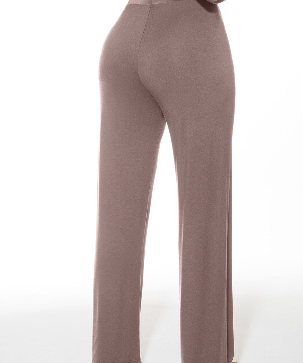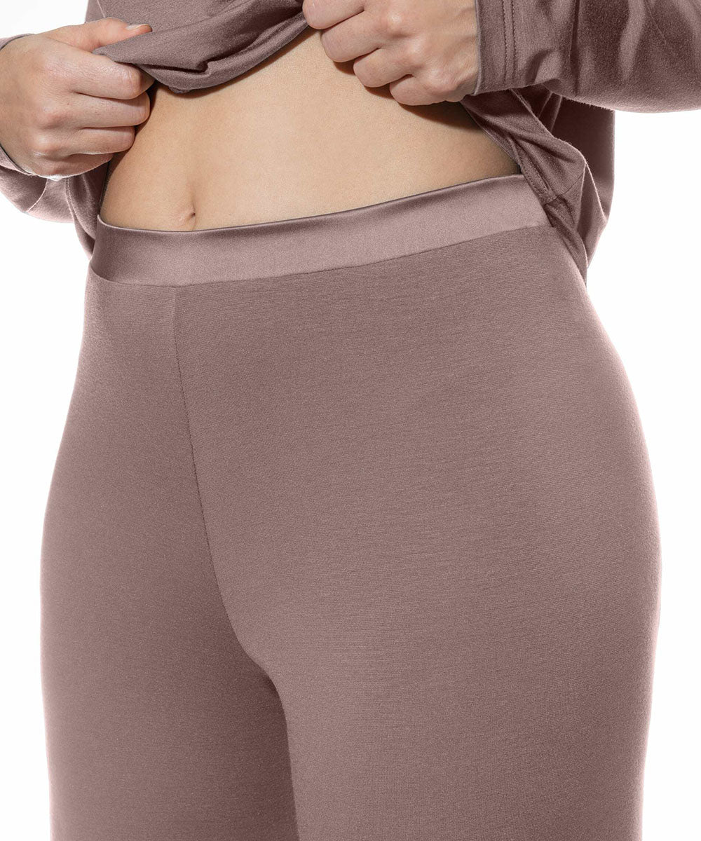 Behagelig natbukser eller loungebukser fra Mey med brede ben. Buksen er lavet i superbløde, lette og komfortable materialer. Tøj lavet i modal er fordelagtig at have, hvis du ønsker åndbart og hurtigtørrende tøj. Dertil kan modal have en kølende effekt, og samtidig er det meget vandabsorberende – hvilket kan være til gavn for dig, hvis du har tildens til at svede.