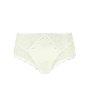 En højtaljet taitrusse, der både er elegant og komfortabel. Bomuldsforingen gør trussen ekstra behagelig. Frontstykket er forstærket med en bomuld- og mikrofiberblanding, der giver shape-effekt til maven. Den feminine blonde starter på frontstykket og fortsætter over hofterne. Trussen er lavet i den blødeste mikrofiber med flade sømme på bagstykket, der gør trussen glat og diskret under kropsnært tøj.