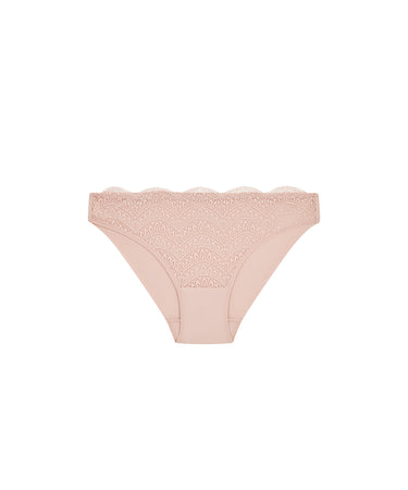 Denne taitrusse vil forføre dig med dens kombination af ultra blød mikrofiber kombineret med blonde, der føles som 'second skin'. Trussen er designet med flade sømme på bagstykket, der gør trussen glat og diskret under kropsnært tøj. Trussen er designet med en blonde på frontstykket. Taitrussen er den bedstsolgte og mest almindelige trussetype. Taitrussen har som regel et skråt snit bagpå og dækker det meste af balderne. Et højt bensnit fortil og et smalt sidestykke får benene til at syne længere - altså er modellen god til dig, der gerne vil fremhæve ben og tilføre optisk længde. Materiale: 67% polyamid, 27% elastan, 6% bomuld.