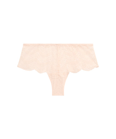 Flatterende hipstertrusse fra Simone Pérèle designet med yndige broderier. Trussen er ideel under kropsnært tøj. Trussemodellerne hipster og shorts har en vandret benudskæring. Hipstertrussen går lidt op på balden og tegner et vandret snit mens shortsene dækker hele balden. Særligt populære er hipstermodellerne med fine franske blonder, som tegner et smukt mønster hen over balderne og de mange sømløse og laserskårne hipstertrusser og shorts, som ikke ses under tætsiddende tøj. Materiale: 64% polyamid, 28% elastan, 8% bomuld.
