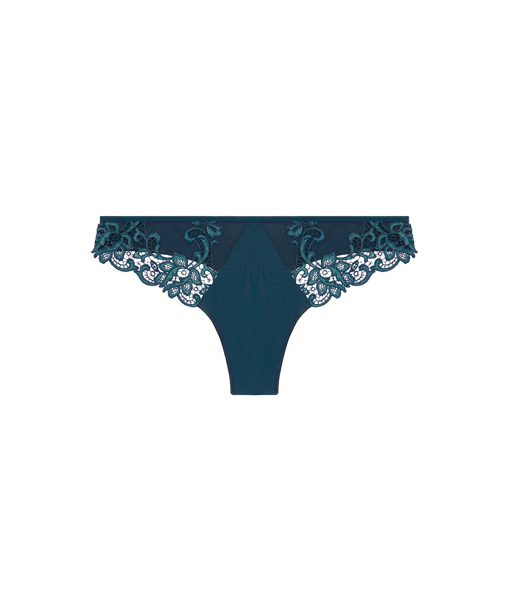Denne stringtrusse vil forføre dig med dens kombination af ultra blød mikrofiber kombineret med en yndig blonde, der føles som 'second skin'. G-strengen gør trussen diskret under kropsnært tøj. Designet med en elastisk blonde ved hofterne, der fortsætter til bagstykket, hvor kanten er afsluttet med en yndig picotkant. Materiale: 39% polyamid, 37% polyester, 20% elastan, 4% bomuld