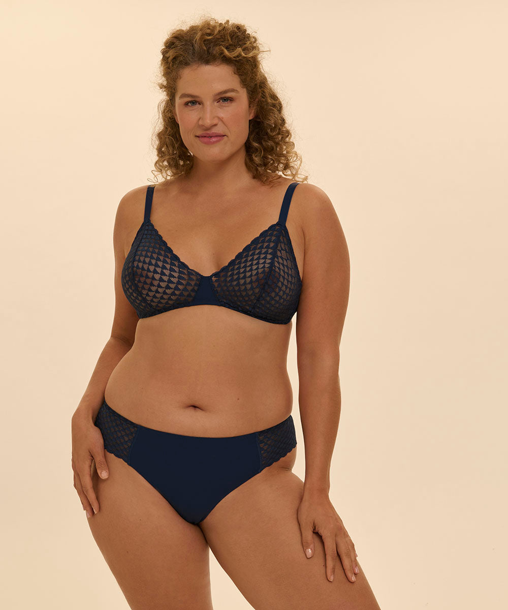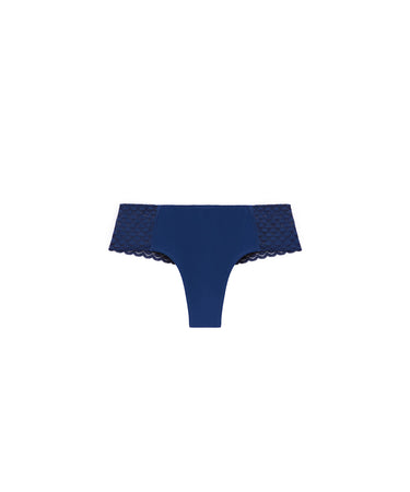 Subtile low-cut shorty-trussen er designet til at sidde sømløst og usynligt under tøjet, hvilket gør den ideel, når du bærer mere tætsiddende outfits. Den er fremstillet i et uigennemsigtigt strikket materiale med elegant, håndlavet bølgekantet blonde ved hofterne og bagpå, som forener feminin stil med en glat, sømløs pasform.