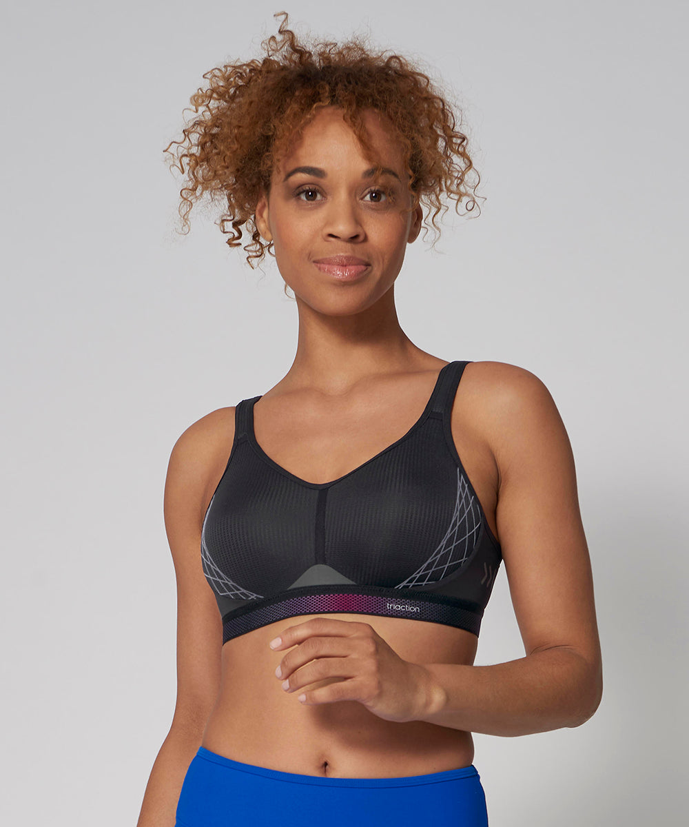 Maksimalt komfortabel sportsbh fra Triumph Triaction med perfekt støtte, når du dyrker sport, der kræver stor bevægelsesfrihed. Innovativ og funktionel bh med god pasform og optimalt hold. Bløde, lette spacerskåle, der er lavet i en åndbar og fugtighedsregulerende kvalitet. Bekvemme, brede stropper med let polstring i skulderområdet. Materiale: 57% Polyester, 28% Polyamid, 15% Elastan