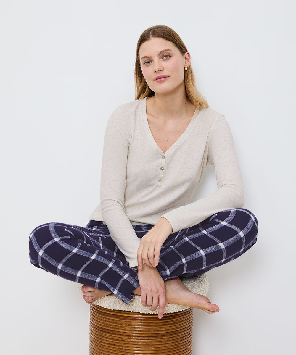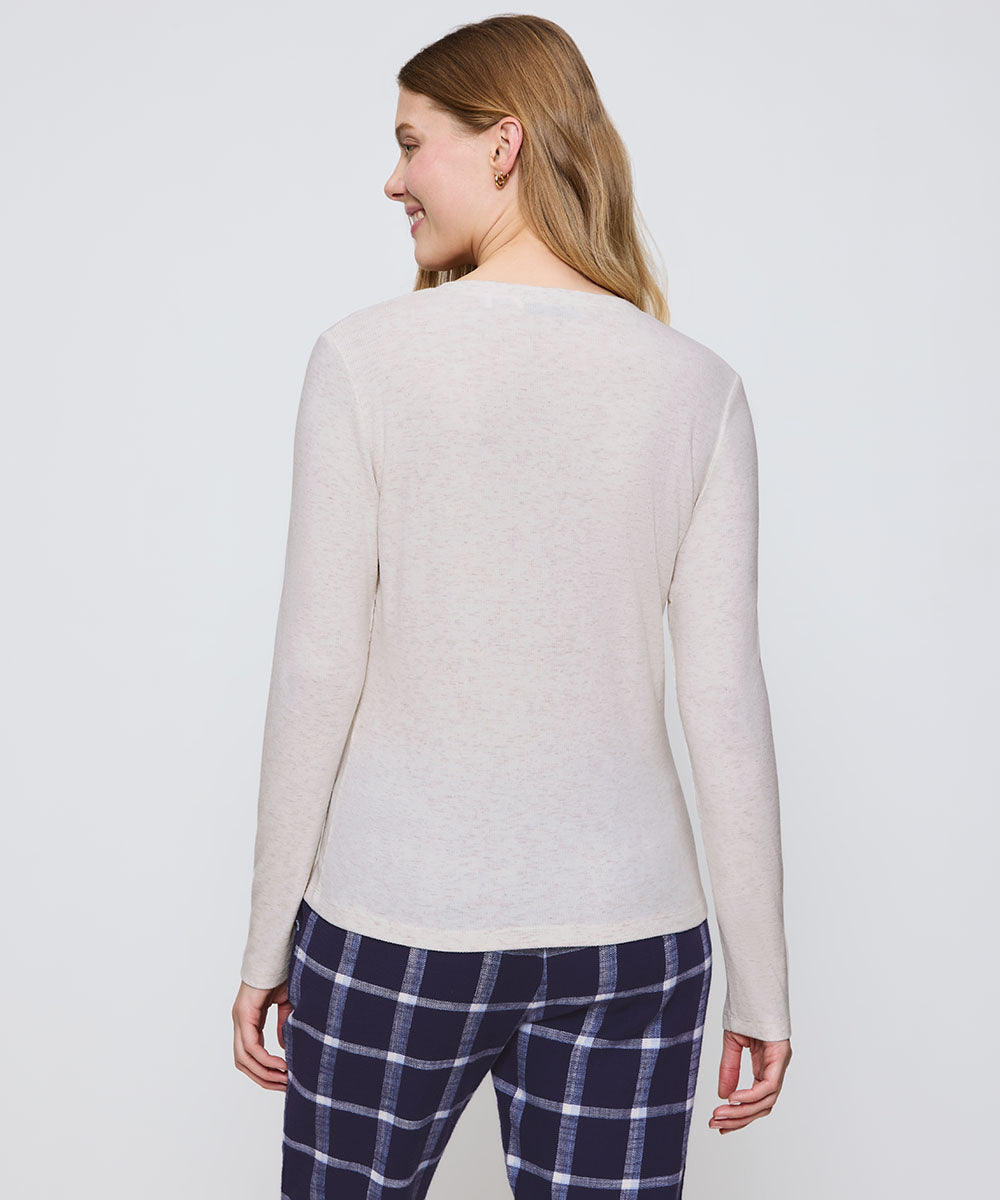 Klassisk langærmet top fra Triumph. Toppen kombinerer komfort og stil med en alsidig V-udskæring med knaplukning. Brug denne sammen med dine yndlings natbukser fra Triumph.