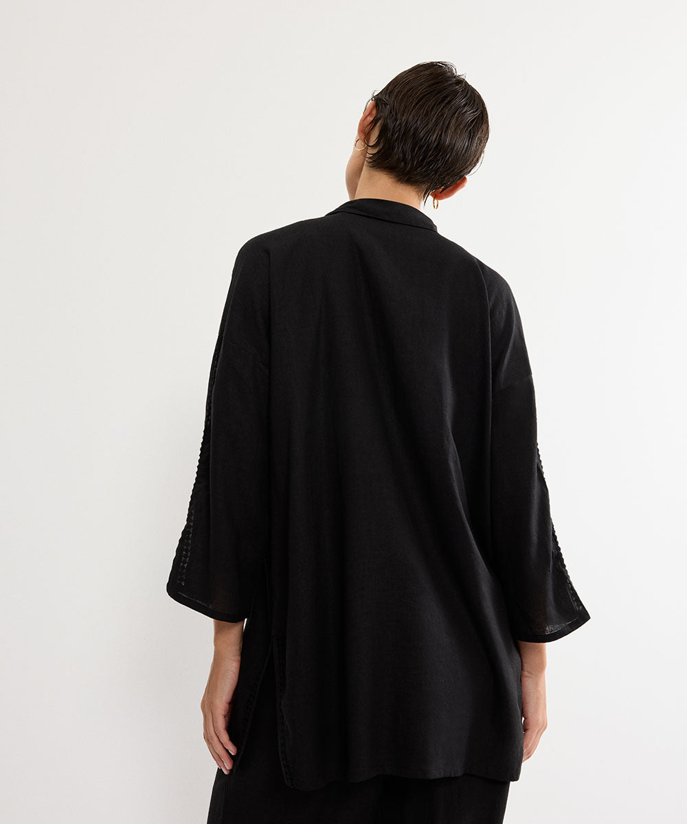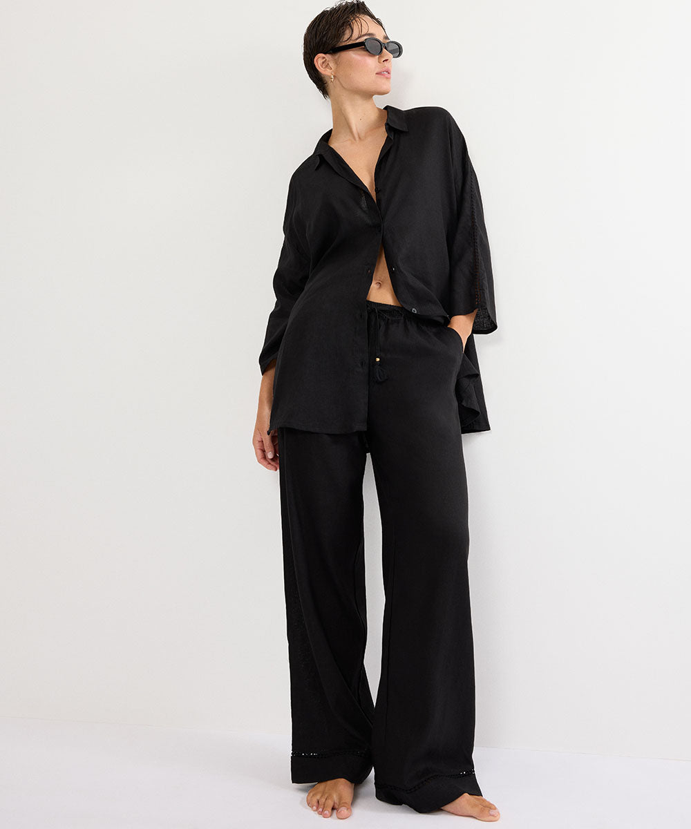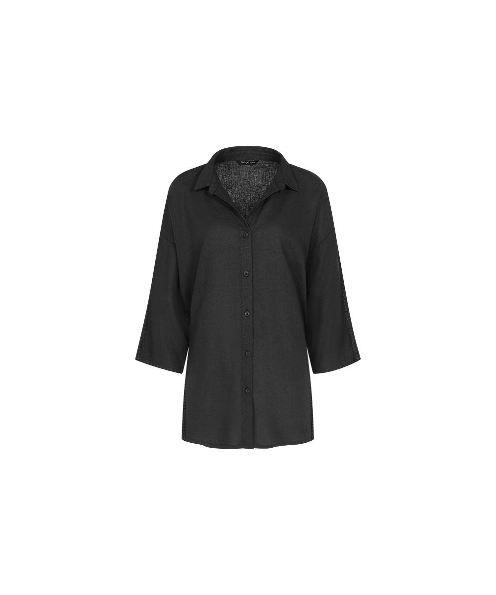 Sommerlig skjorte fra Triumph. Skjorten er fremstillet i en blød og åndbar hørblanding, som føles let mod huden. Fine detaljer langs ærmerne og i siderne tilfører et sofistikeret og feminint udtryk. Fuldend looket med de matchende bukser fra Triumph.