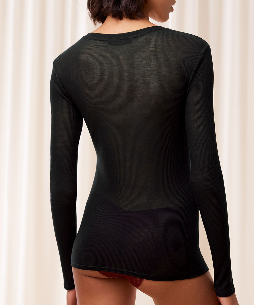 Skøn bluse fra Triumph med lange ærmer. Denne top med rund halsudskæring er lavet næsten udelukkende af certificeret Lenzing Tencel stof. Dens usædvanlige blødhed, strækbarhed og lethed gør den til den perfekte top at bære alene eller som lag på lag. Buede sidesømme følger kroppens kurver og giver et flatterende look.