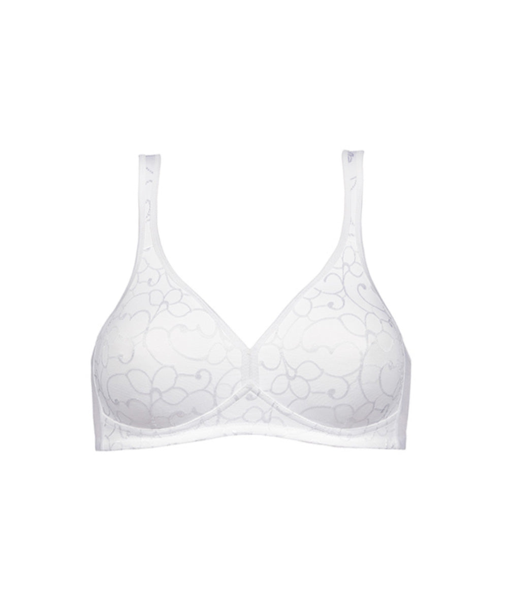 Feminin fuldskålsbh fra Triumph uden bøjler eller vattering. Bh'en er lavet i en blød bomuldsblanding og dekoreret med blomster på stoffet, som giver et feminint touch.