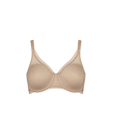 Komfortabel trekvartskålsbh med minimizer effekt. Bh'en reducerer optisk barmen med en skålstørrelse. Bh'en har behagelig, brede stropper og giver optimalt hold og komfort til barmen. Enkel trekvartskålsbh uden polstring i let mesh med formende, fleksible 3D-bøjler, der sidder perfekt om brystet.