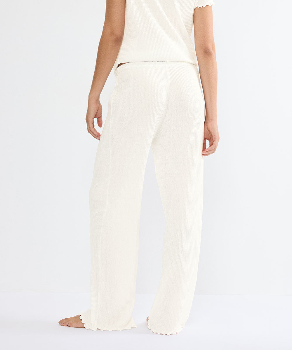 Bløde natbukser fra Triumph. Disse hellange bukser har en pasform med lige ben og en elastisk linning med justerbare snore, hvilket giver en høj komfort. De fine flæsekanter giver den klassiske silhuet et feminint præg. Fuldend looket med den matchende overdel fra Triumph.