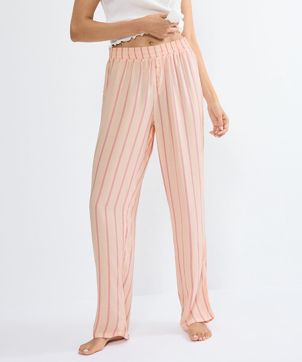 Yndige natbukser fra Triumph. Disse hellange bukser har en afslappet, behagelig pasform med en blød, elastisk linning, som gør dem gode at have på. Det klassiske snit og den fine knapdetalje giver et moderne touch. Disse bukser er fremstillet af 100 % viskose, hvilket gør dem åndbare, lette og dermed perfekte til varme sommerdage.