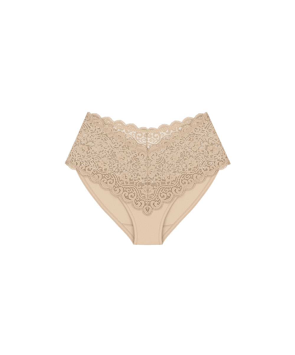 MaxiKomfortabel, blød og høj taitrusse fra Triumph i blødt og glat microfiber materiale. Trussen er designet i en fin all-over blonde med forstærket frontstykke. Trussekanten er afsluttet med en feminin picotkant. Maxitrussen er en højtaljet trusse med bredt sidestykke og lavt bensnit. Maxitrussen dækker den nederste del af maven og passer derfor godt til tøj, der går op i taljen.