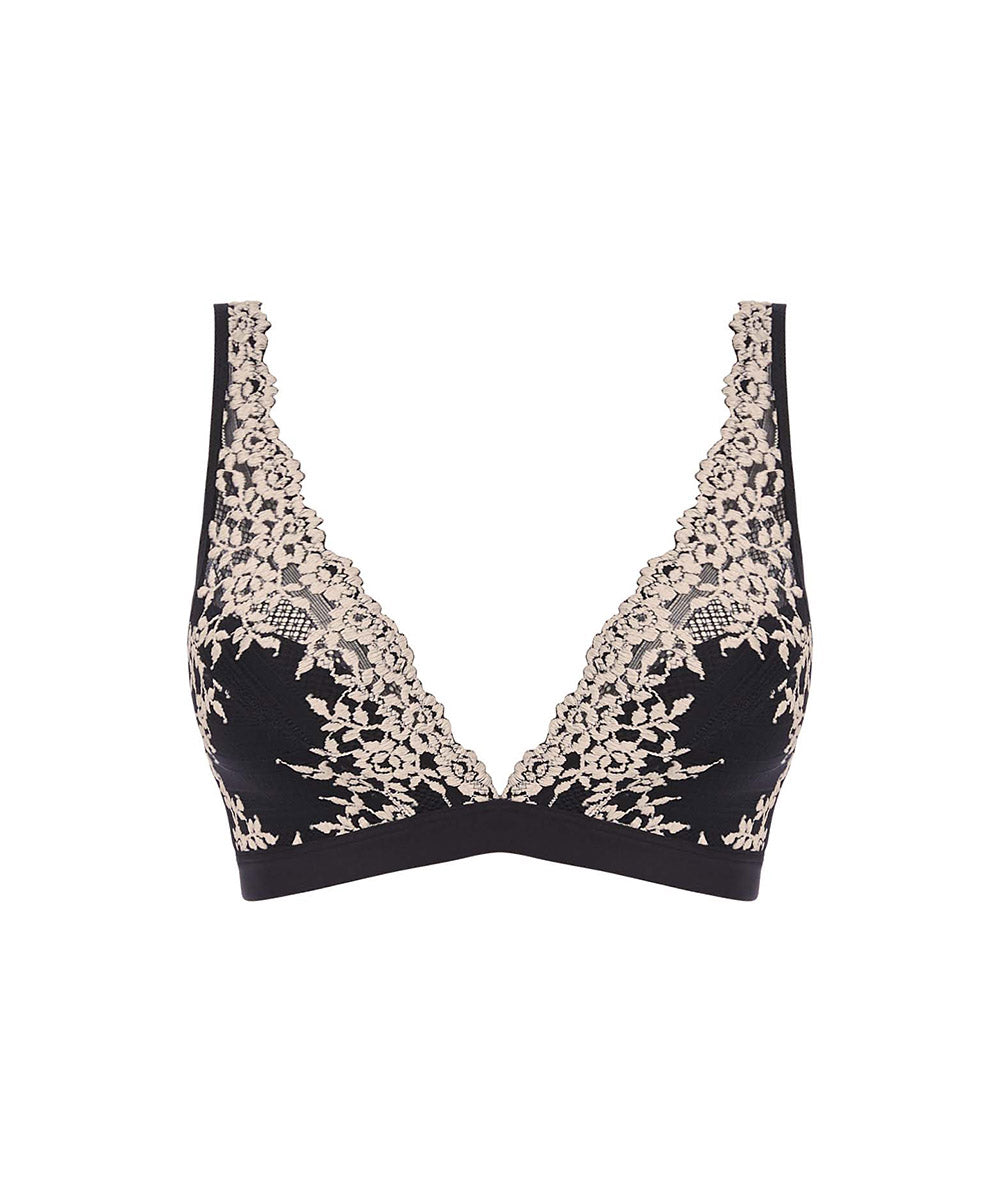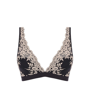 Skøn blonde trekantstop uden bøjle og uden vattering fra Wacoal. Trekantsbh'en er designet med v-formet skåle med en smuk blonde, som lægger sig pænt til barmen. Toppen er designet med et bredt bånd under skålene, for at give en god støtte. Bh'ens stropperne er justerbare og kan derfor krydses på ryggen.
