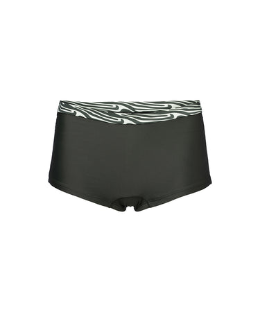 Bikiniunderdel fra Wiki, som er lavet i en shortsmodel med høj talje. Badetøj skal gerne sidde stramt, da det udvider sig ved brug. Husk altid at skylle badetøjet op i koldt vand efter brug.