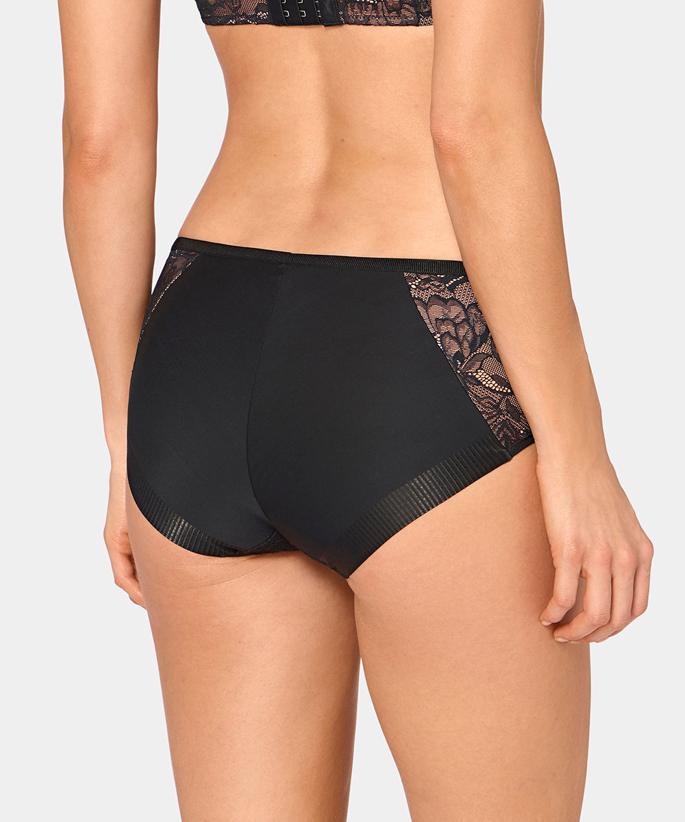 Komfortabel, blød og høj taitrusse. Trussen er designet i en fin all-over blonde med forstærket frontstykke.