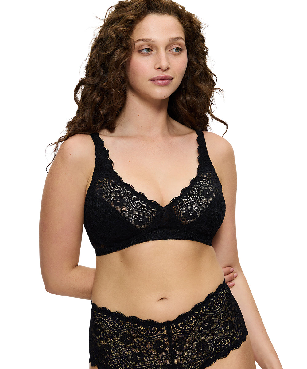 Velsiddende fuldsskålsbh fra Triumphs Classics Amourette serie uden bøjle. Bh'en er uden polstring, der giver maksimal bevægelsesfrihed. Ekstra support i skålen og i siden for optimal støtte. Denne model er god til en større barm. Fuldskålsbh dækker det meste af brystet og giver dermed et godt hold til barmen. Stropperne er placeret godt oppe på skuldrene og danner ofte et U på ryggen, så de ikke så let glider ned og så de samtidig giver et bedre hold. Bh'ens sider og rygstykke er ekstra forstærket for at give en bedre støtte til barmen. Fuldskålsbh'en er særlig god til kvinder med en større barm eller til dig, som, uanset størrelse, gerne vil have den optimale støtte og hold fra din bh.