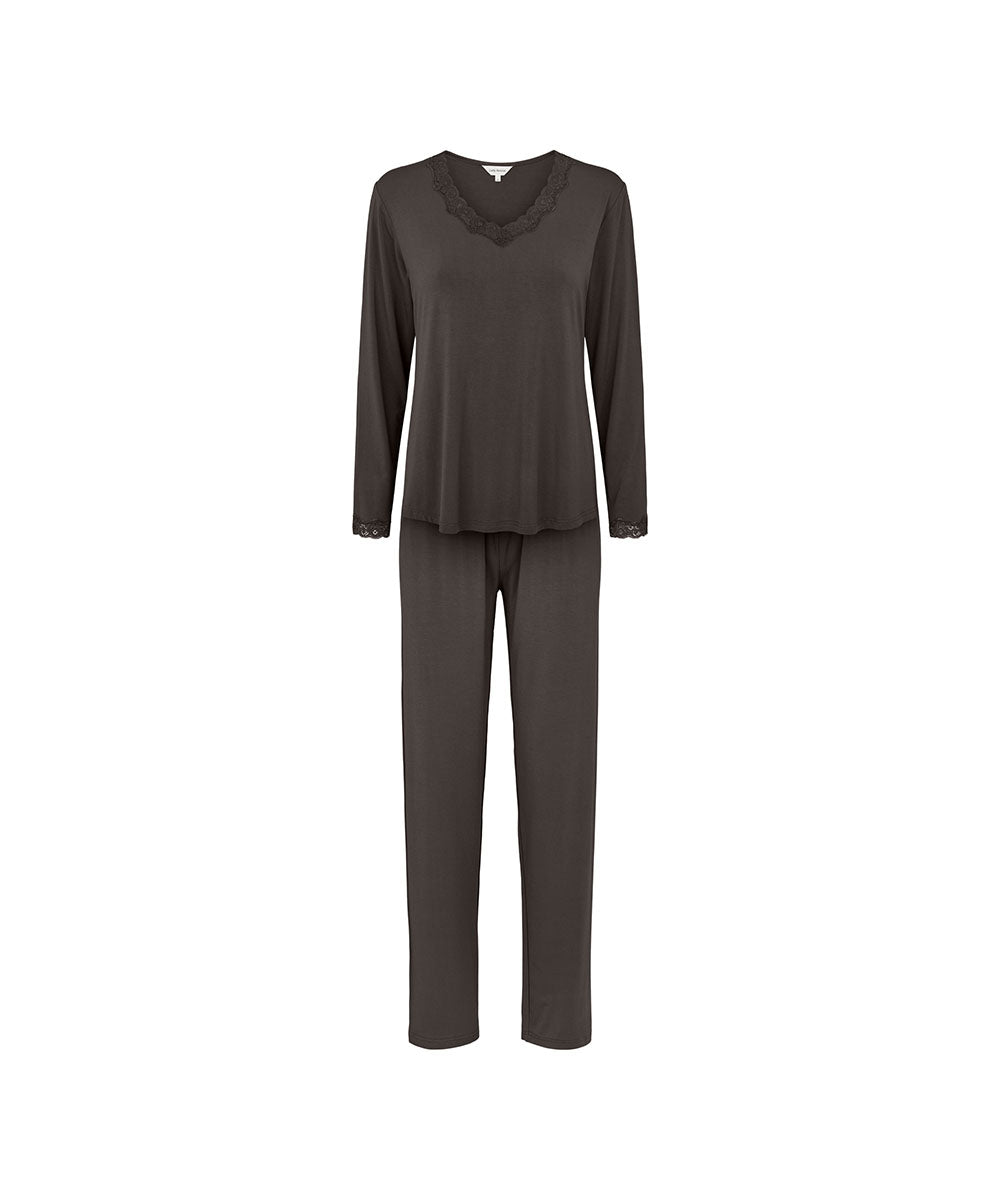 Bamboo - long sleeve pyjamas with lace - 220 CHOCOLATE