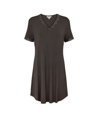 Bamboo - short sleeve nightdress with - 220 CHOCOLATE