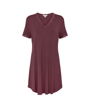 Bamboo - short sleeve nightdress with - 221 PLUM