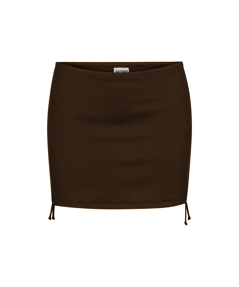 Flot bikiniskørt fra Saltabad med indbygget trusse. Skørtelængden kan justeres via snøre i siderne. Badetøj skal gerne sidde stramt, da det udvider sig ved brug. Husk altid at skylle badetøjet op i koldt vand efter brug.