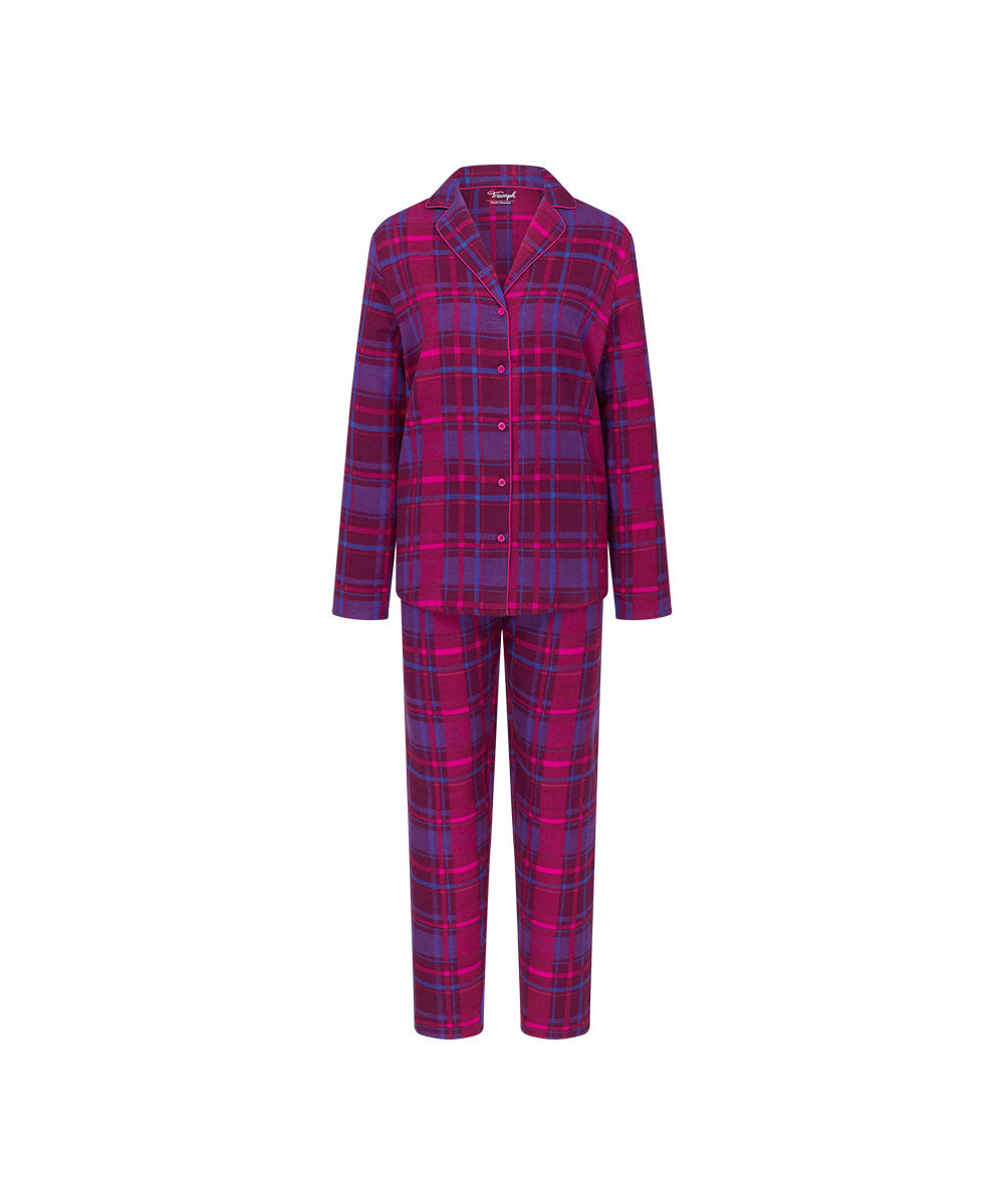 Yndig pyjamas fra Triumph med store tern. Overdelen lukkes med gennemgående knapper og bukserne er designet i et afslappet type.