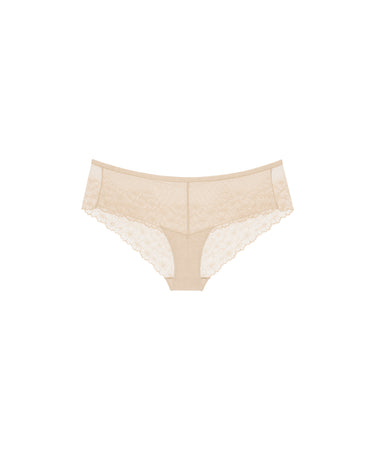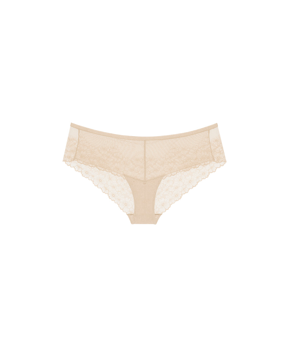 Skøn hipstertrusse fra Triumph i all-over blonde. Hipstertrussen giver en tydelig, feminin silhuet og et naturligt, smart look. Trussemodellerne hipster og shorts har en vandret benudskæring. Hipstertrussen går lidt op på balden og tegner et vandret snit mens shortsene dækker hele balden. Materiale: Materiale: 80% polyamid, 20% elastan.