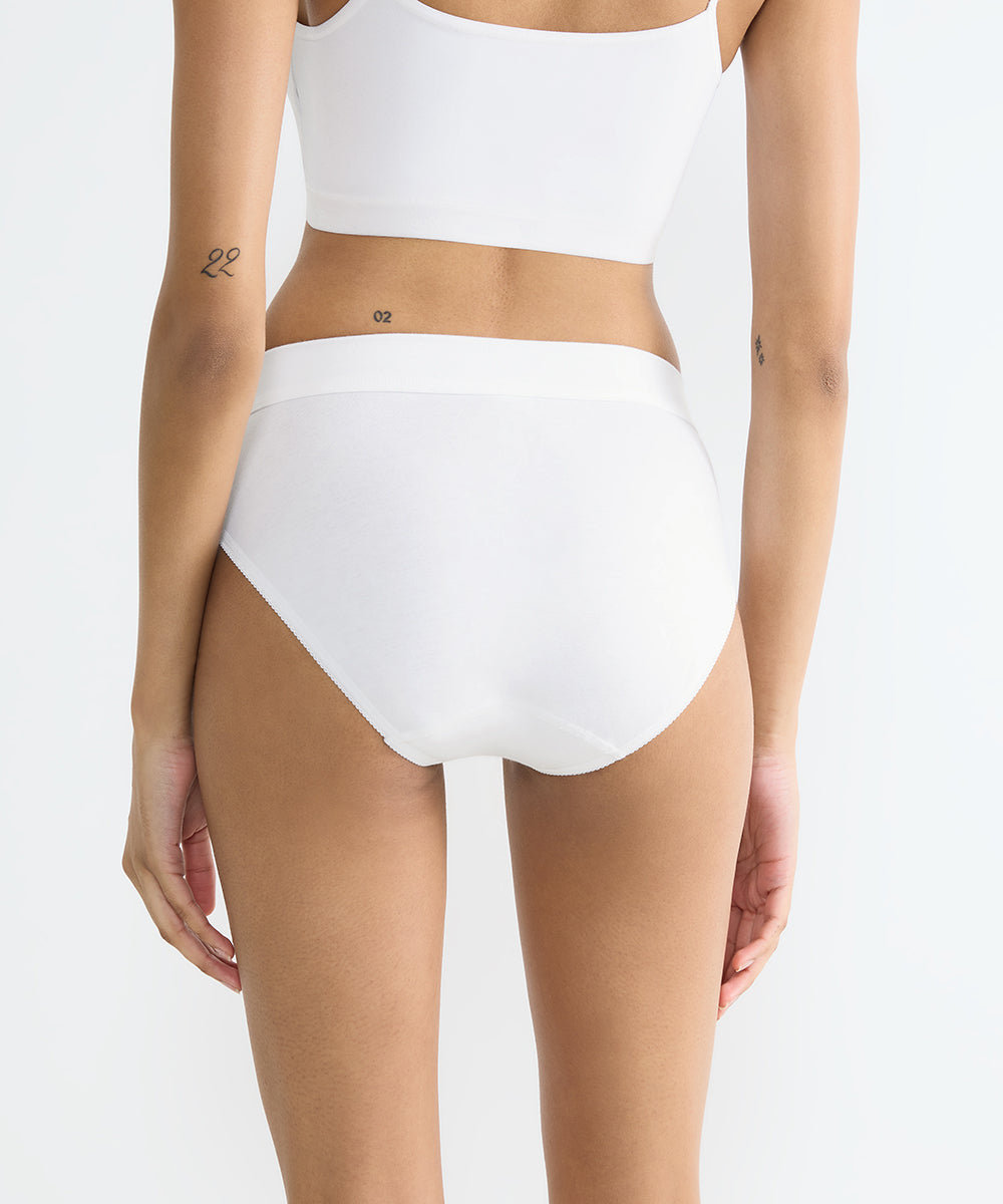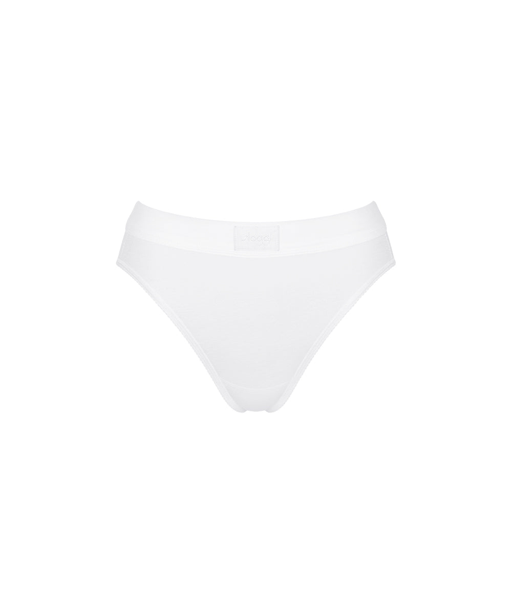 Taitrusse fra Sloggi med bred, komfortabel og dobbelt linning. Trussen er lavet i en blød kvalitet med højt indhold af bomuld. Denne Double Comfort tai-trusse har high-cut-leg der giver en flatterende form. Den sømløse rørformede linning med Sloggi-branding giver denne trusse et elegant sporty look mens den fine frottékile og den GOTS-certificerede bløde økologiske bomuld sikrer fuld komfort.