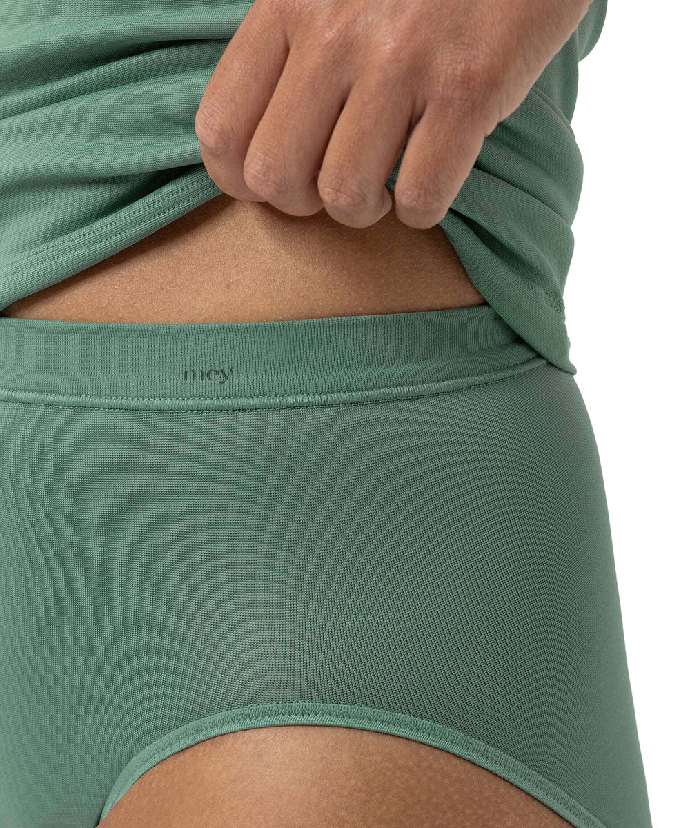 Komfortabel, højtaljet taitrusse fra Mey med blød linning og flade sømme. Trussen er lavet i en åndbar kvalitet. Maxitrussen er en højtaljet trusse med bredt sidestykke og lavt bensnit. Maxitrussen dækker den nederste del af maven og passer derfor godt til tøj, der går op i taljen.