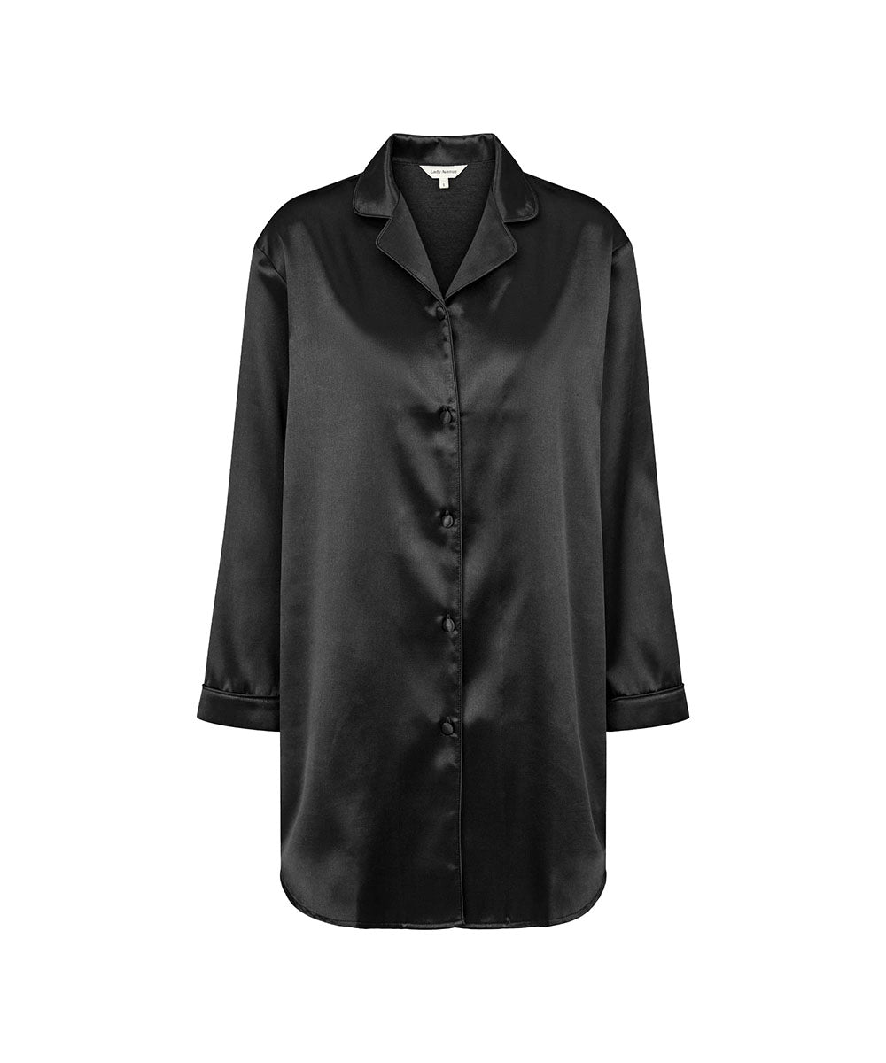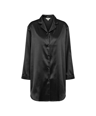 Homewear - Cotton & satin - Satin Long Sleeve Nightshirt - 02 BLACK