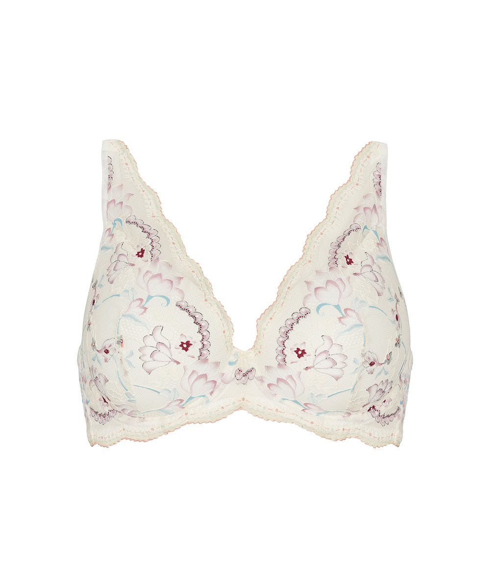 Elegant fuldskålsbh fra Missya med bøjle og formstøbt skål i blonde. Blonden dækker bh'en hele vejen rundt, følger op ad stroppen til skulderen og dækker barmen som en fuldskål, hvilket giver bh'en feminine detaljer samt en god pasform, som er ideel også for en større barm.