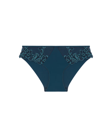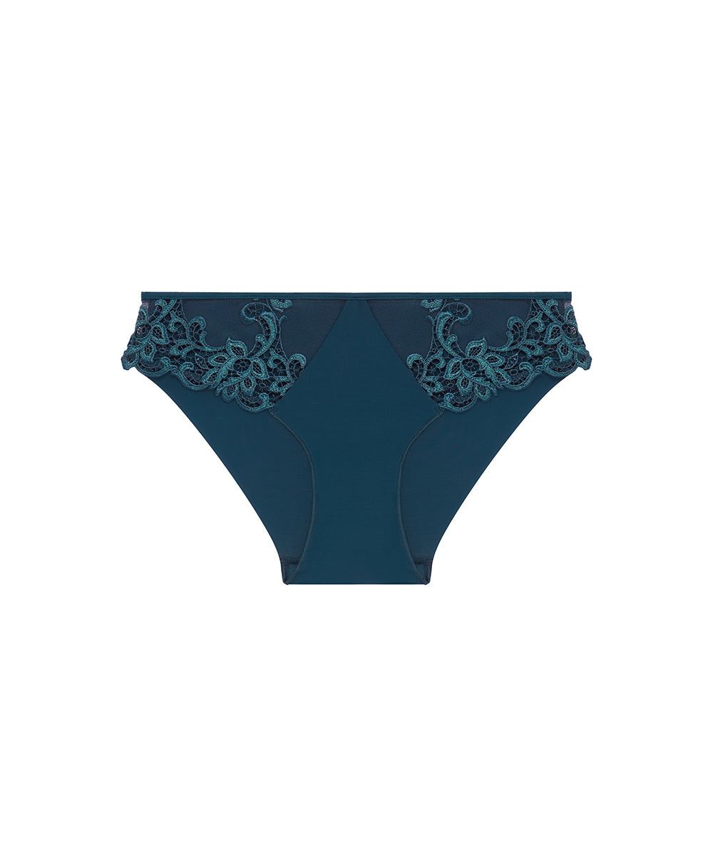 Denne trusse fra Simone Perele vil forføre dig med dens kombination af ultra blød mikrofiber kombineret med en eksklusiv blonde. Trussen er designet med flade sømme på bagstykket, der gør trussen glat og diskret under kropsnært tøj. Designet med en elastisk blonde ved hofterne, der fortsætter til bagstykket, hvor kanten er afsluttet med en yndig picotkant.