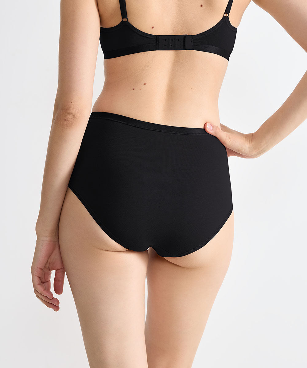 3-pak højtaljet taitrusse fra Sloggi med høj linning og lav benudskæring. Trussen har ekstra bløde og flade trussekanter, der ikke ses under kropsnært tøj. Trussen er lavt i ekstra blødt og komfortabelt materiale med højt indhold af bomuld.