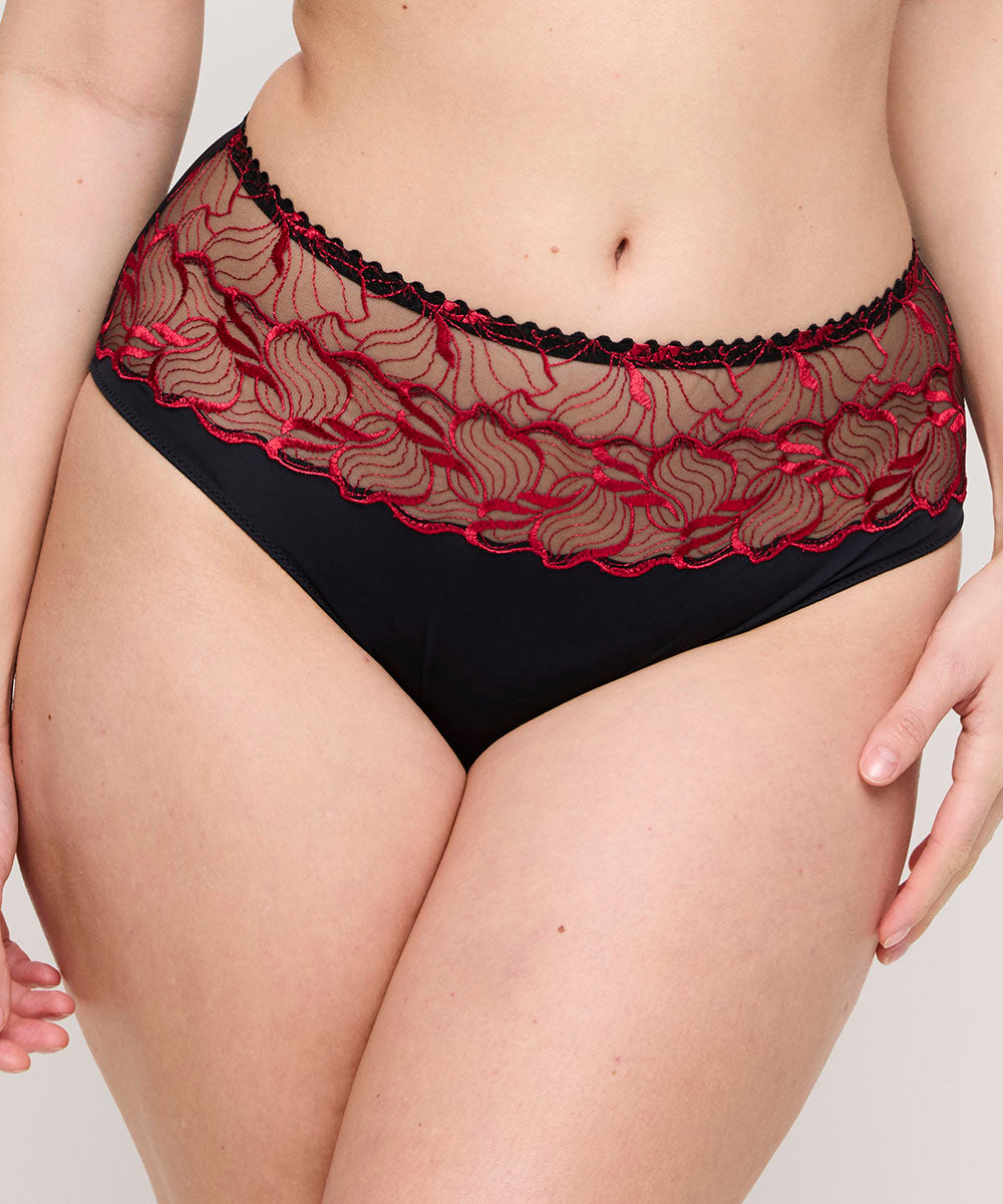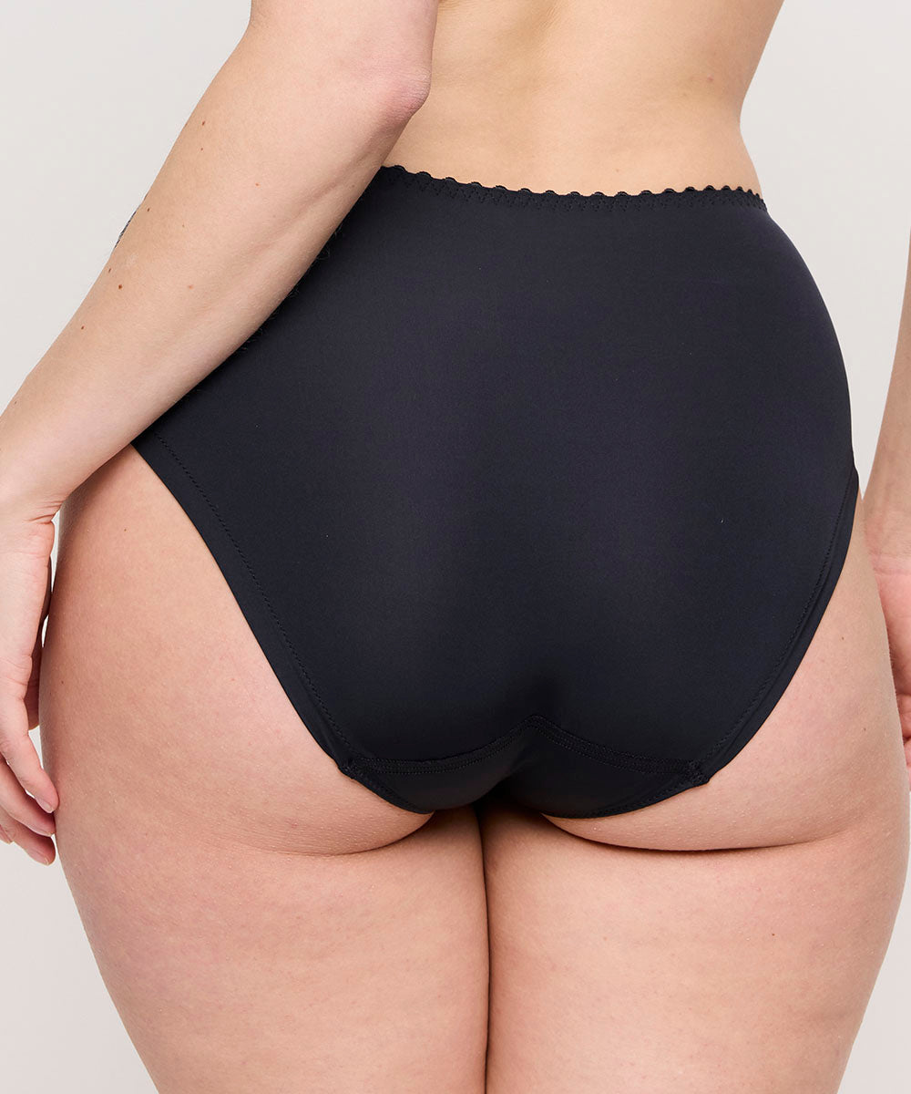 Klassisk højtaljet taitrusse fra PrimaDonna i en elegant og komfortabel pasform, hvor den høje talje dækker maven. Bagstykket er opakt, og frontstykket er prydet med smukke farverige broderier. Maxitrussen, fra PrimaDonna, er en højtaljet trusse med bredt sidestykke og lavt bensnit. Maxitrussen dækker den nederste del af maven og passer derfor godt til tøj, der går op i taljen.